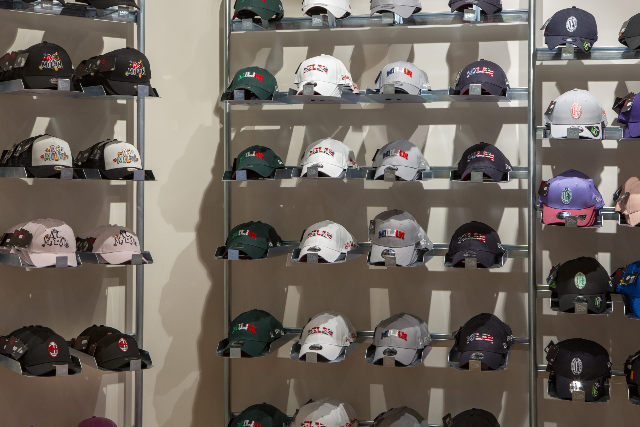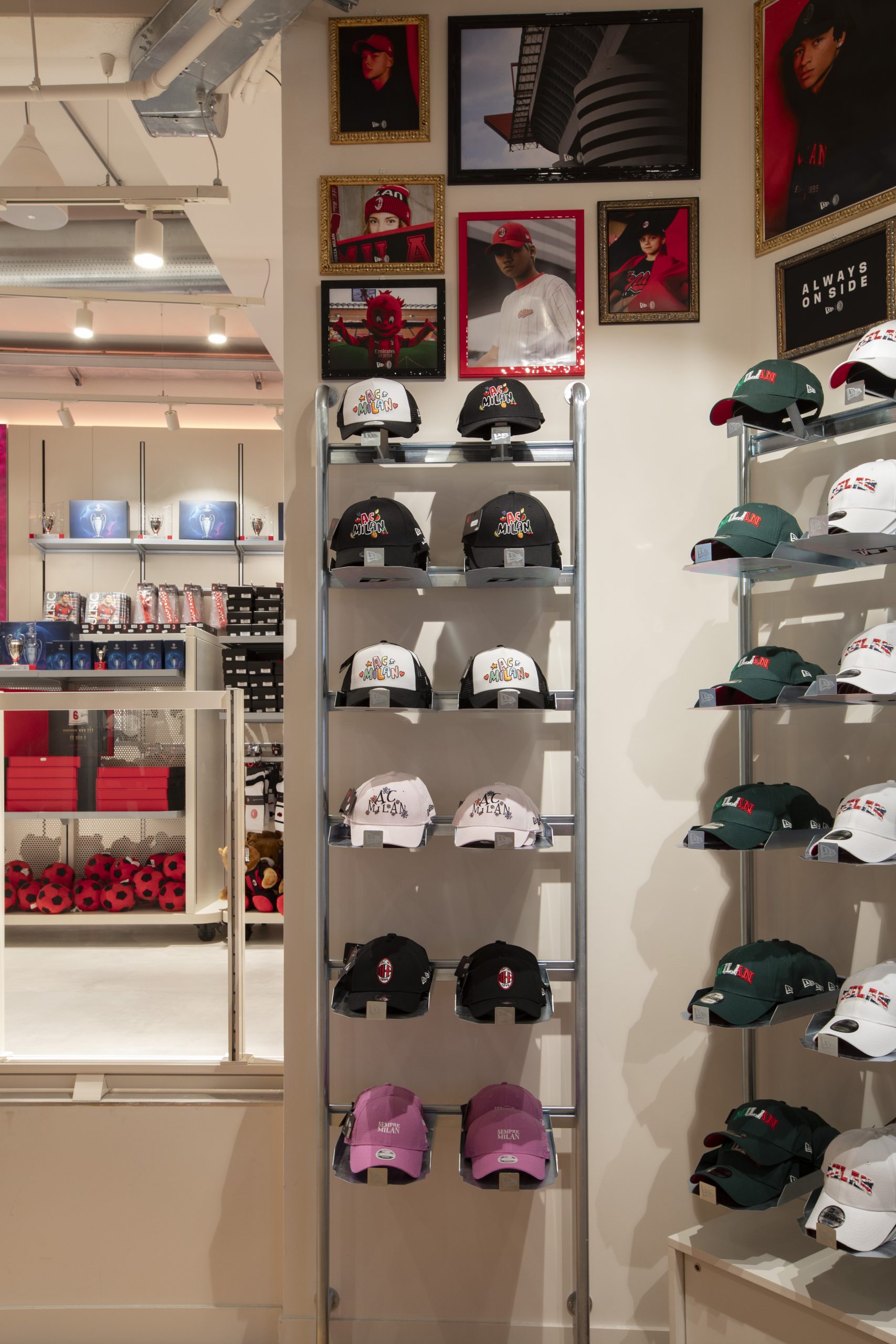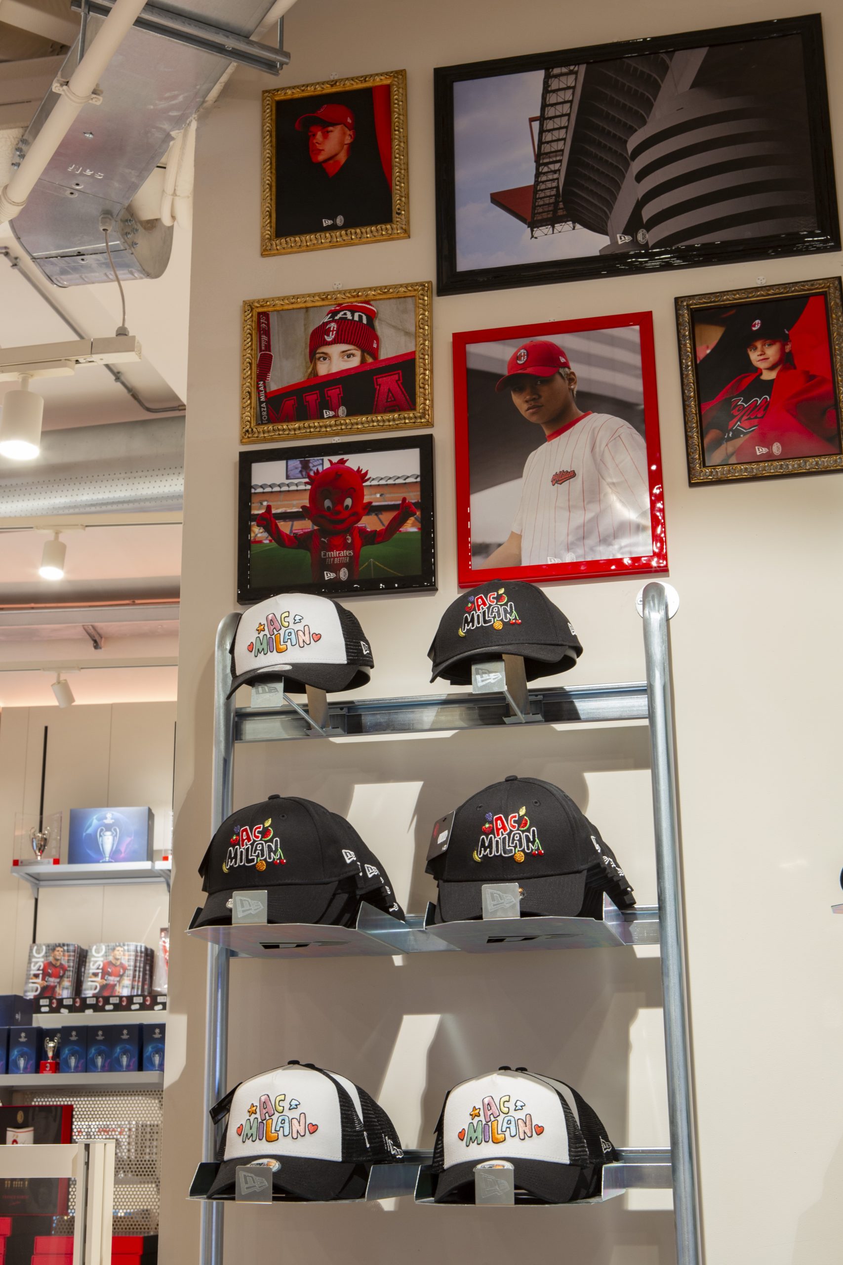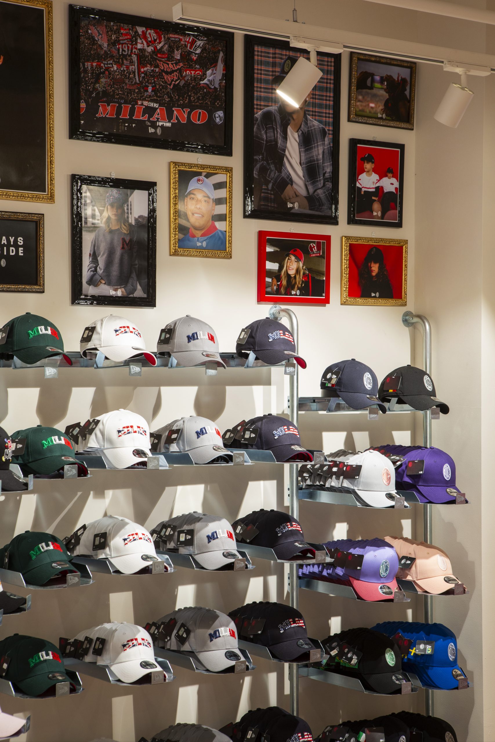 NEW ERA X MILANSTORE NEW ERA X NUOVO MILANSTORE Realizzazione di branded wall dedicati al marchio “NEW ERA” all’interno del nuovo Milan Store. Il progetto prevede: produzioni di strutture espositive a parete box storage cornici per brand image trasporto e montaggio