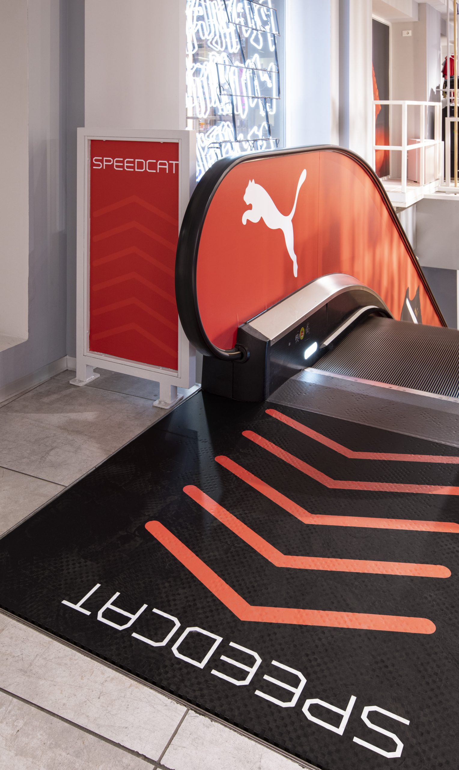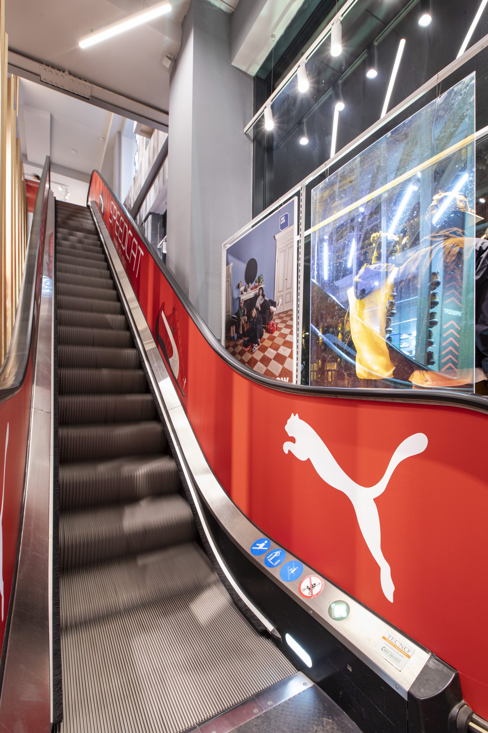 Il progetto ha riguardato la produzione e applicazione di pellicole adesive per la personalizzazione estetica di scale mobili in un ambiente commerciale. L’obiettivo era integrare elementi di branding che riflettessero l’identità del marchio del cliente, trasformando un elemento funzionale in uno strumento di comunicazione visiva efficace.