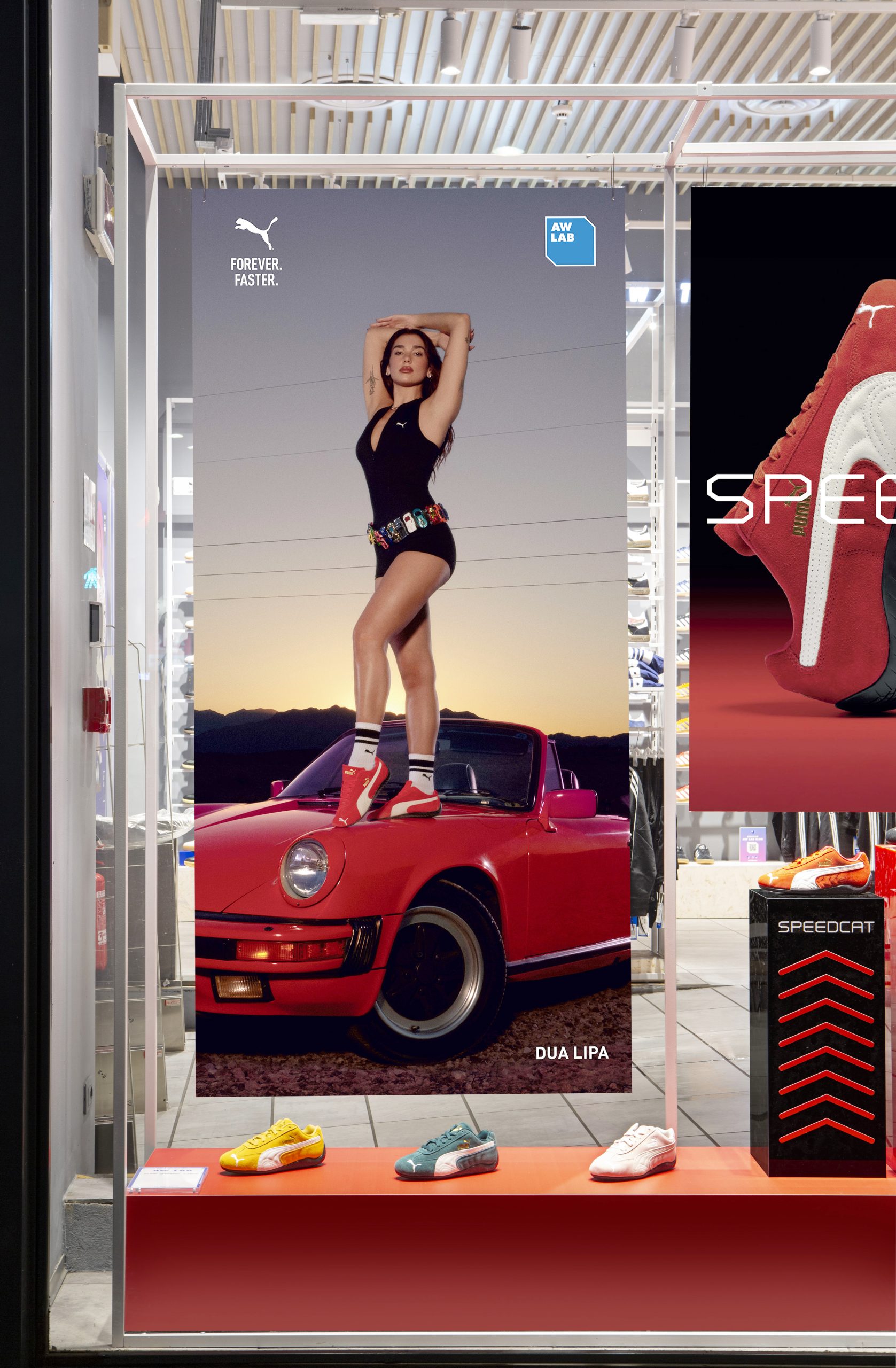 Per il lancio della nuova PUMA Speedcat, CREATIVELEMENT ha curato l’intero processo di progettazione, produzione e allestimento della vetrina presso il flagship store AW LAB in Via Torino, Milano. Questo spazio è stato trasformato in un punto di attrazione grazie a un design che combina estetica, funzionalità e comunicazione visiva d’impatto.