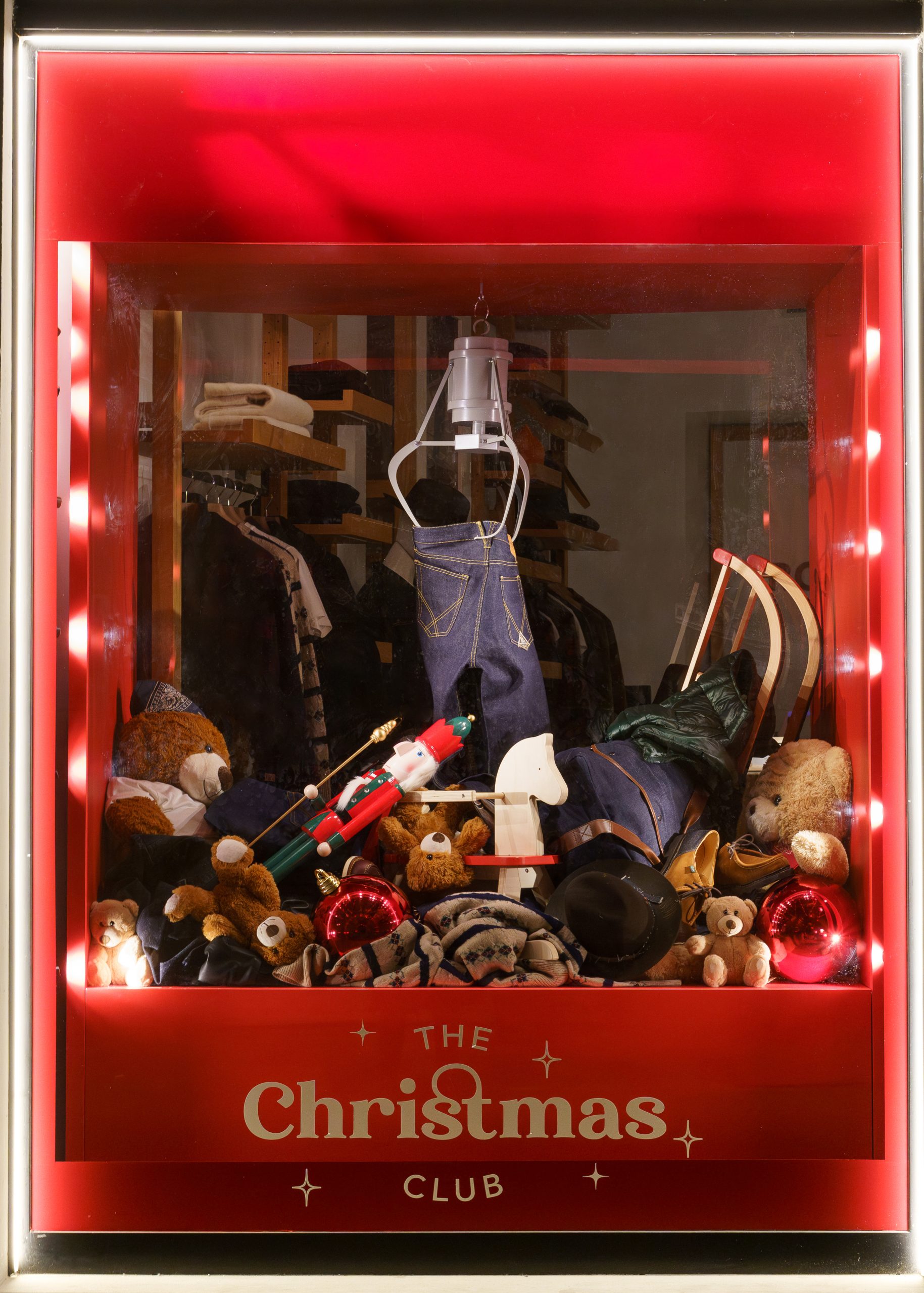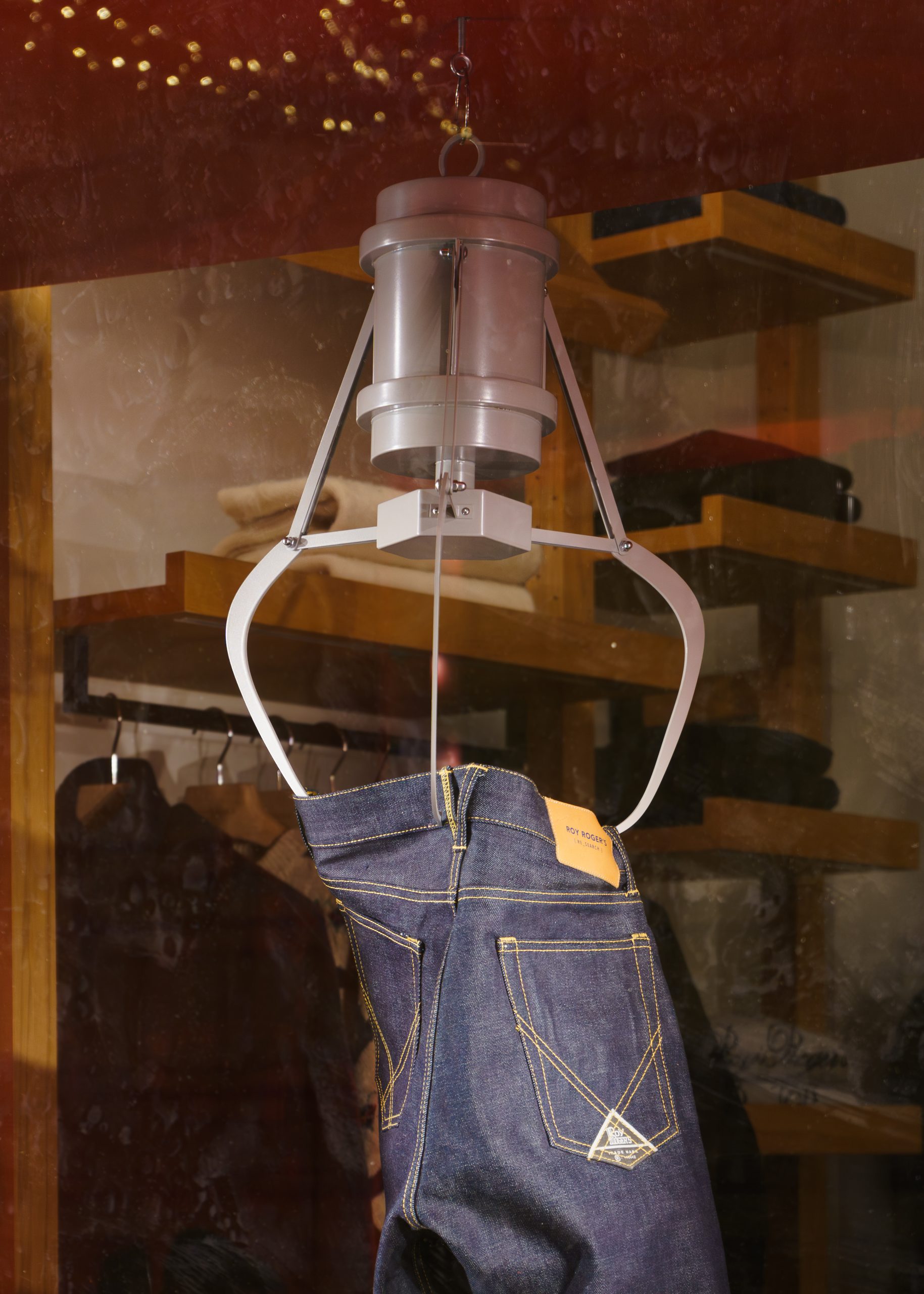 • Esposizione originale: I jeans Roy Rogers sono al centro della scena, presentati in modo creativo attraverso una “macchina artiglio” che richiama i classici giochi delle fiere.