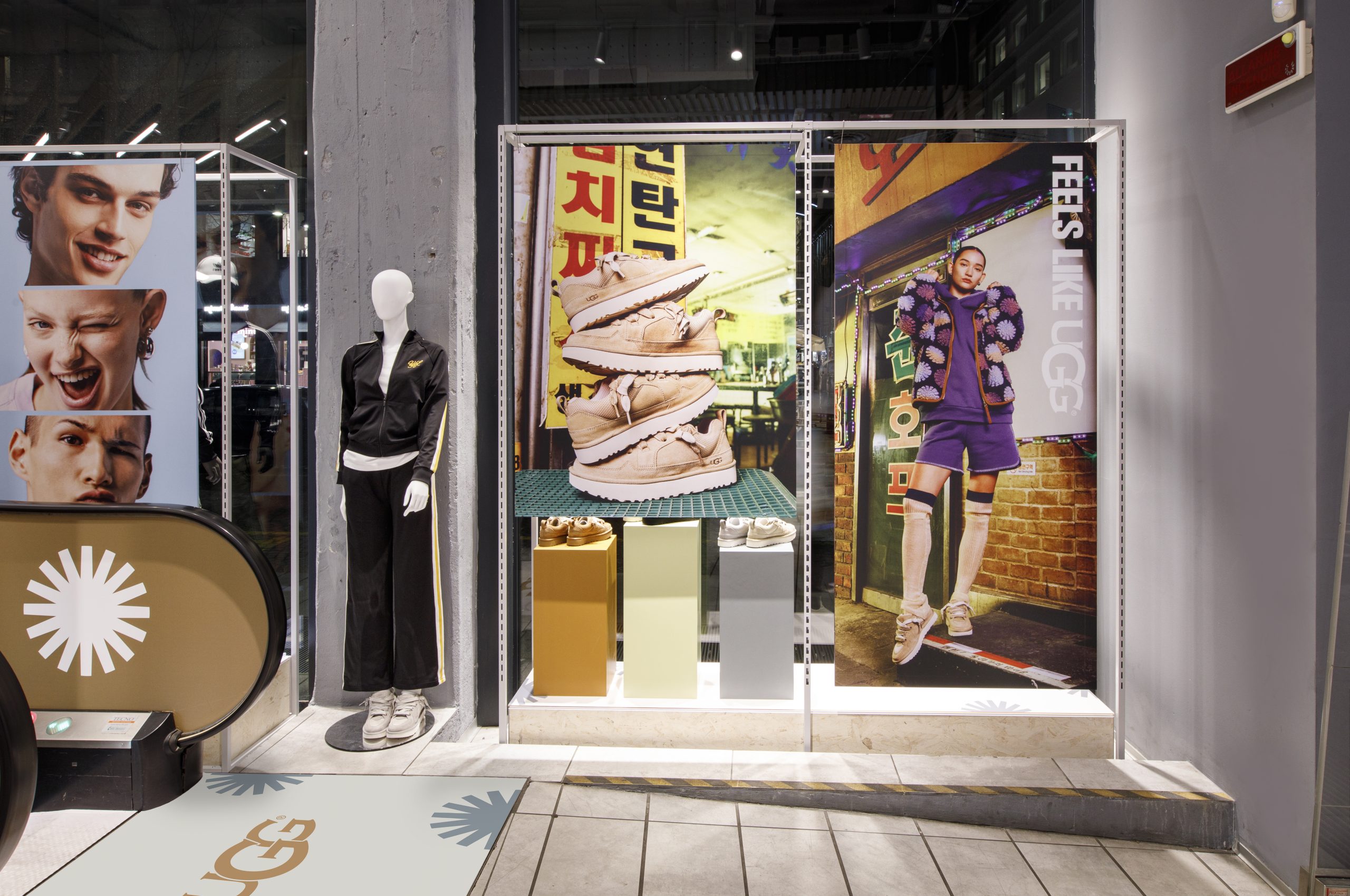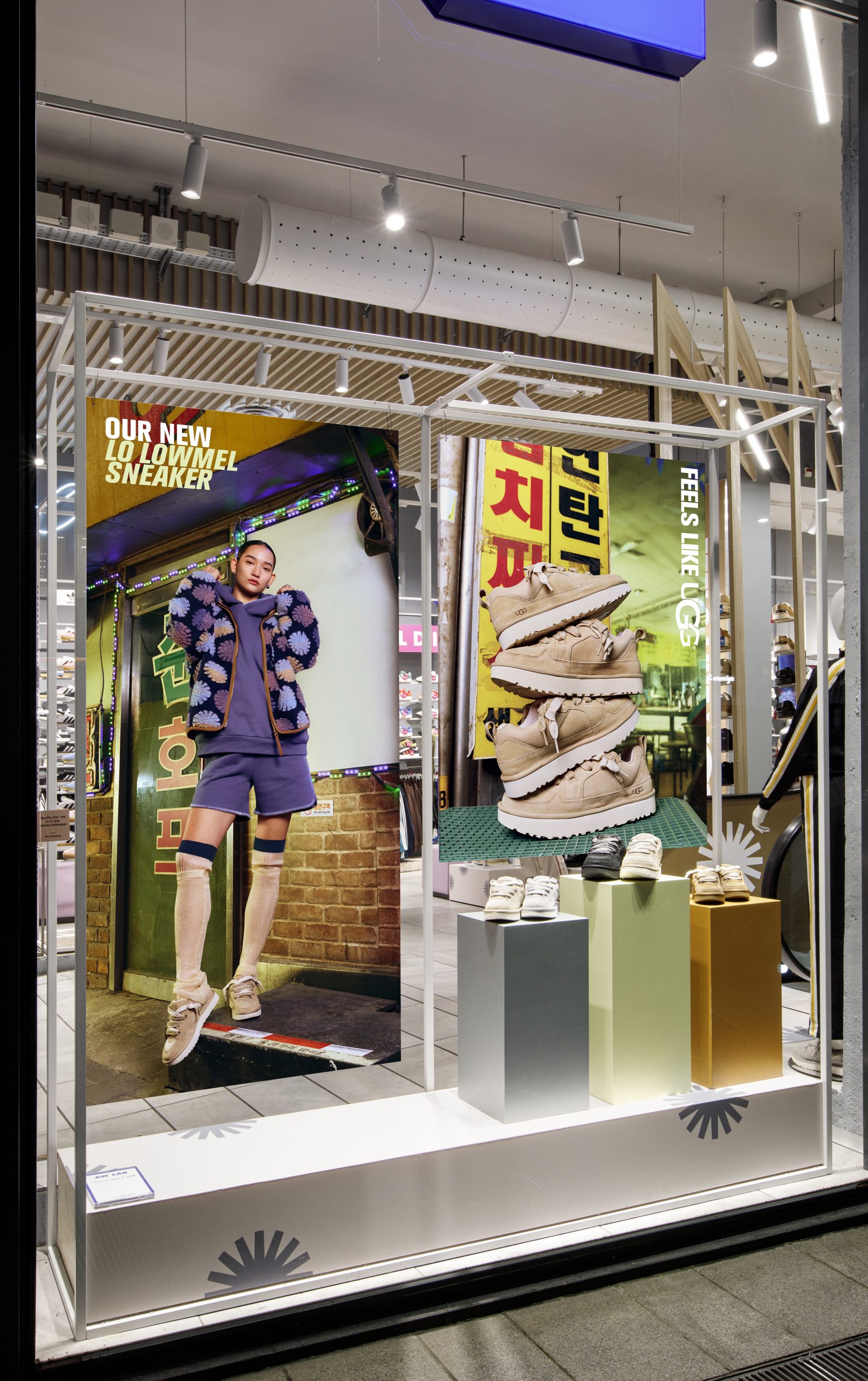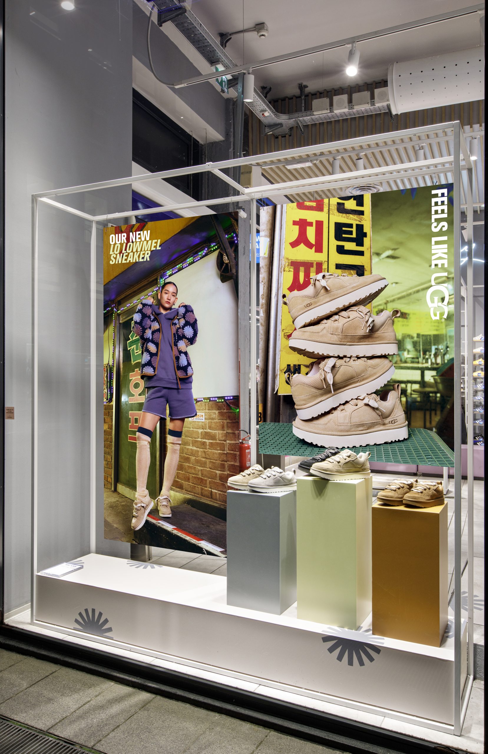 Per le vetrine dei flagship store AW LAB, abbiamo realizzato un allestimento su misura per UGG, combinando design e materiali di alta qualità:
