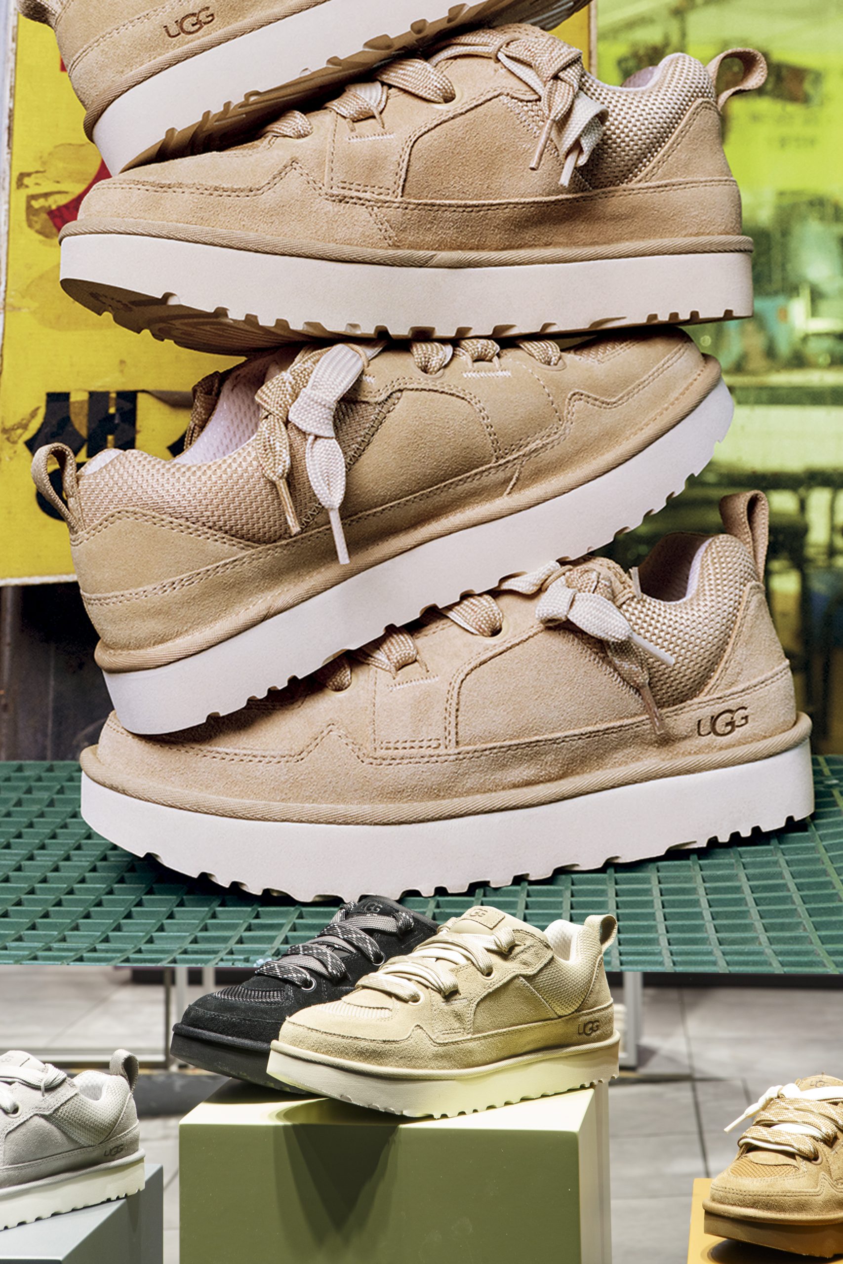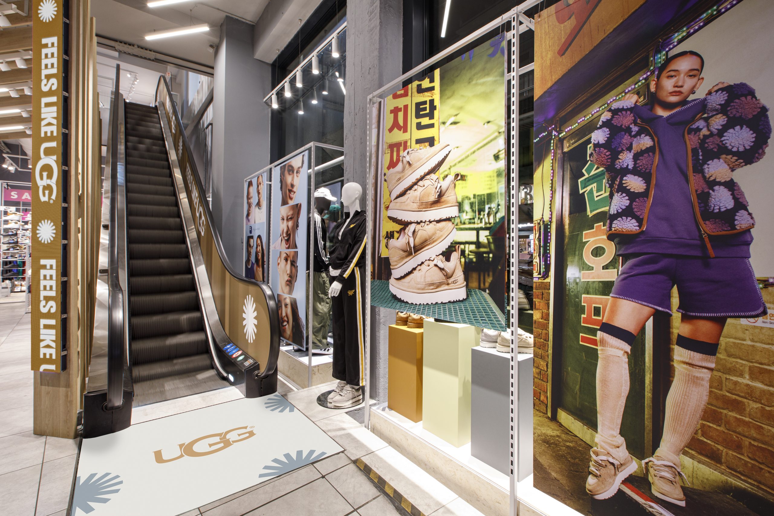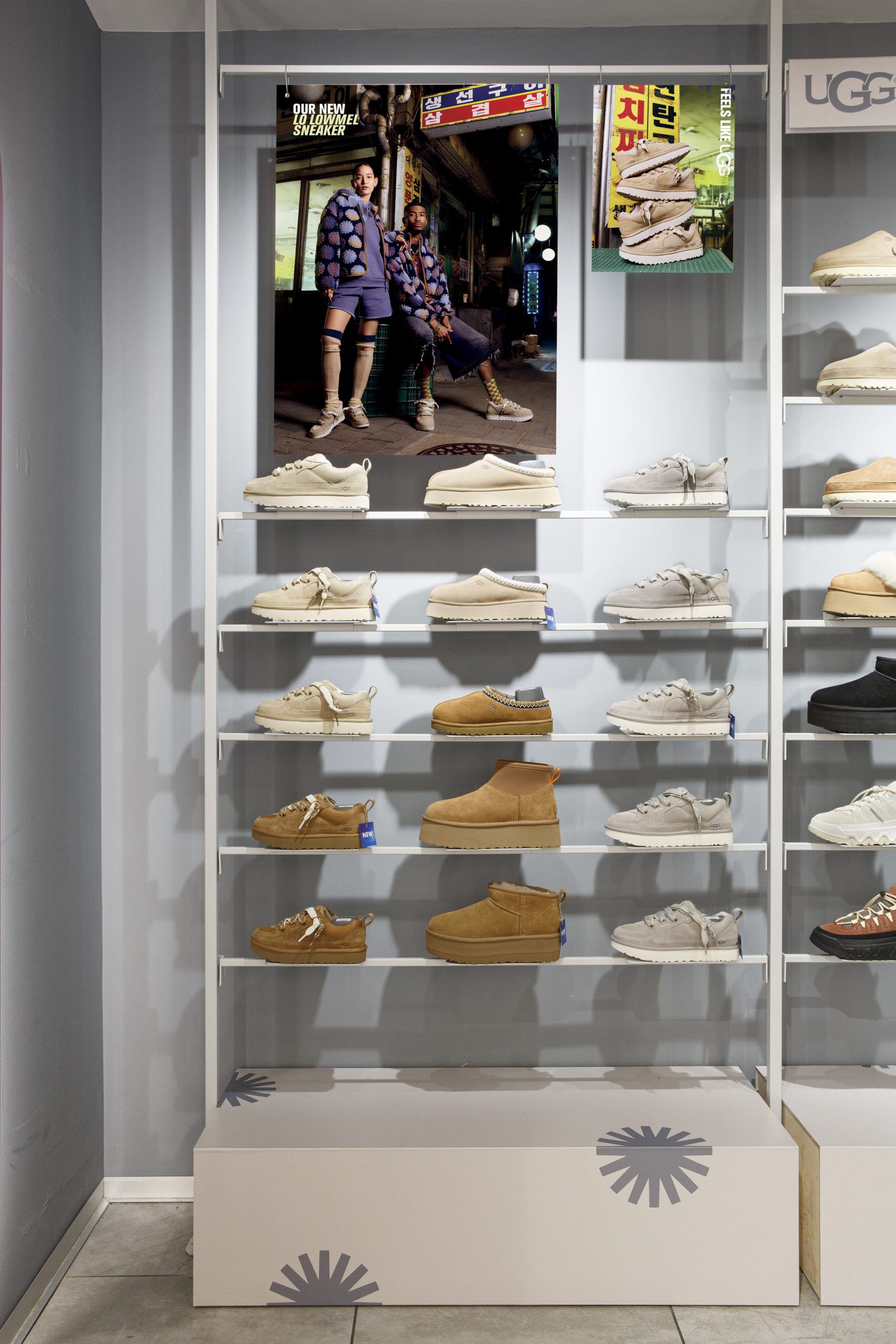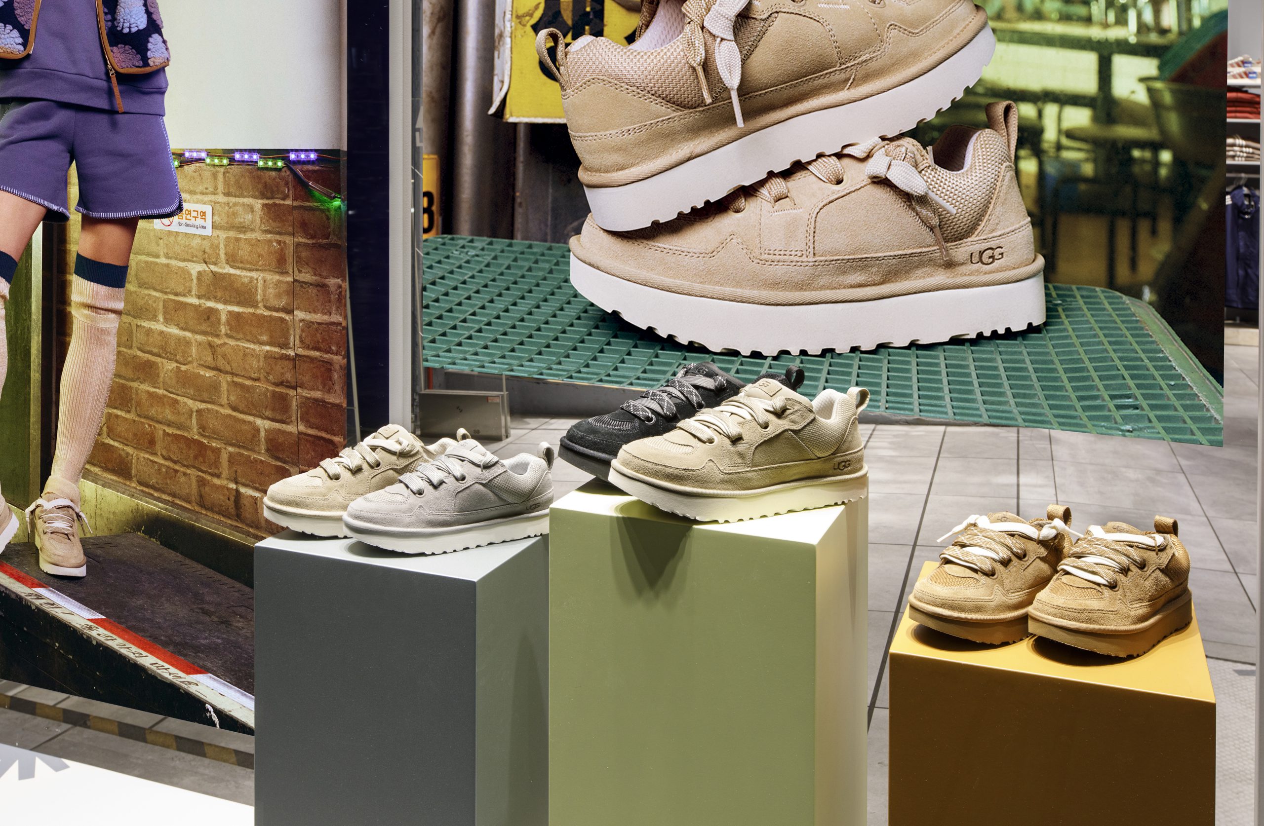 Per le vetrine dei flagship store AW LAB, abbiamo realizzato un allestimento su misura per UGG, combinando design e materiali di alta qualità: